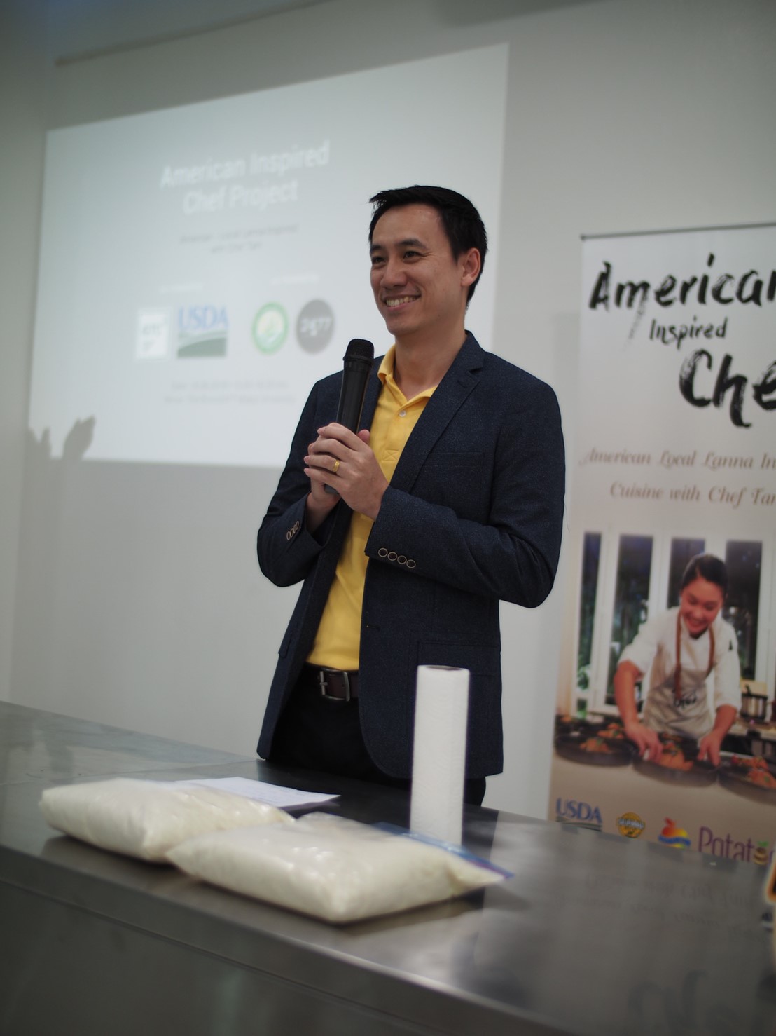 กิจกรรมฝึกอบรมปฏิบัติการและการบรรยายสร้างแรงบันดาลใจในครั้งนี้ได้รับเกียรติจาก เชฟตาม ชุดารี เทพาคำ Top Chef Thailand คนแรกของประเทศไทย ร่วมถ่ายทอดประสบการณ์และความคิดสร้างสรรค์ ภายใต้แนวคิด “American – Local Lanna Inspired with Chef Tam” ผสมผสานสุดยอดวัตุดิบจากทั้งสองประเทศ ซึ่งเชฟตาม ได้นำ แอปเปิ้ล, มันฝรั่ง และผลิตภัณฑ์แปรรูปจากนม (ชีส) จากสหรัฐอเมริกา เข้าคู่กับมรดกวัตถุดิบภูมิปัญญาอาหารพื้นถิ่น (Heritage Ingredients) หลายชนิด อาทิ มะแขว่น, น้ำพริกลาบ, ถั่วเน่าแข็บ, น้ำผึ้งป่า เป็นต้น รังสรรค์เป็นอาหารสาธิตจำนวน 3 รายการ ได้แก่ 1. Baked Laab Pork Stuffed Washington Apple and Colby Cheese and Northern Greens Salad 2. Nam Prik King Mashed Potato และ 3. Potato Sticky Rice Cake with Perilla Seed Whipped Wild Honey ร่วมการเสวนาโดย อาจารย์อนุวัต เชื้อเย็น ผู้อำนวยการศูนย์การศึกษาด้านการท่องเที่ยวเชิงศิลปวิทยาการอาหารนานาชาติ (iGTC) ในหัวข้อ การพัฒนาจุดหมายปลายทางคุณค่าสูง: ปกิณกะการสร้างสรรค์และนำส่ง “คุณค่าไทย” ผ่านมุมมองศิลปวิทยาการอาหารบนฐานมรดกภูมิปัญญาทางวัฒนธรรม (Developing High Value Destination: A Closer Look at Thai Food Heritage & Gastronomy)