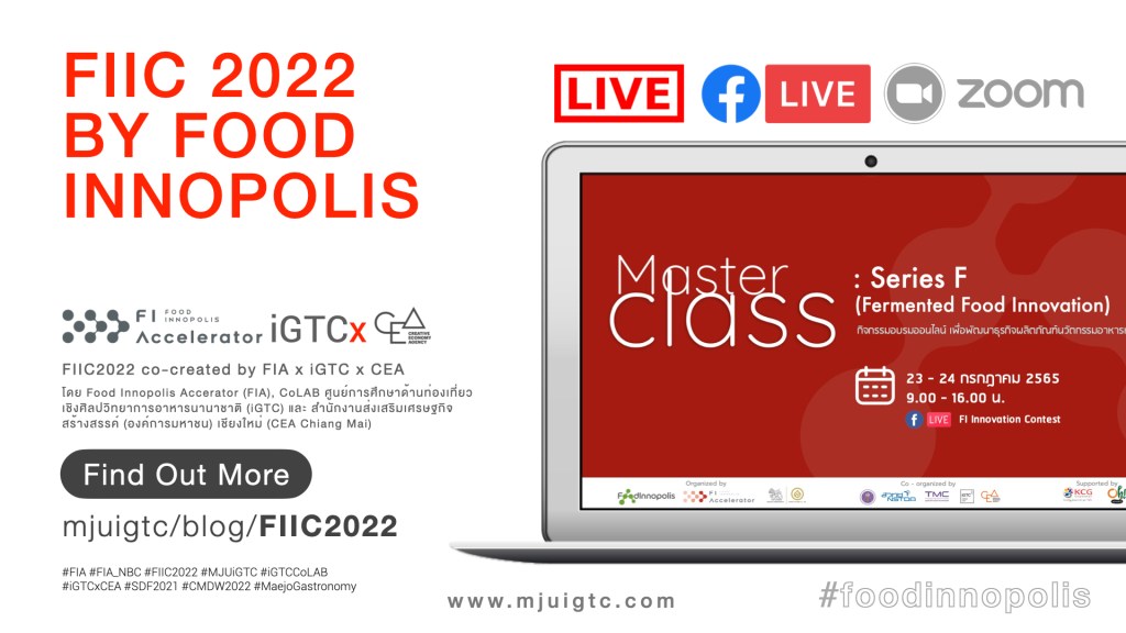 กิจกรรมอบรมออนไลน์เพื่อพัฒนาธุรกิจผลิตภัณฑ์นวัตกรรมอาหารหมักดอง MasterClass: Series F (Fermented Food Innovation)โครงการประกวดนวัตกรรมอาหาร (Food Innopolis Innovation Contest: FIIC2022)