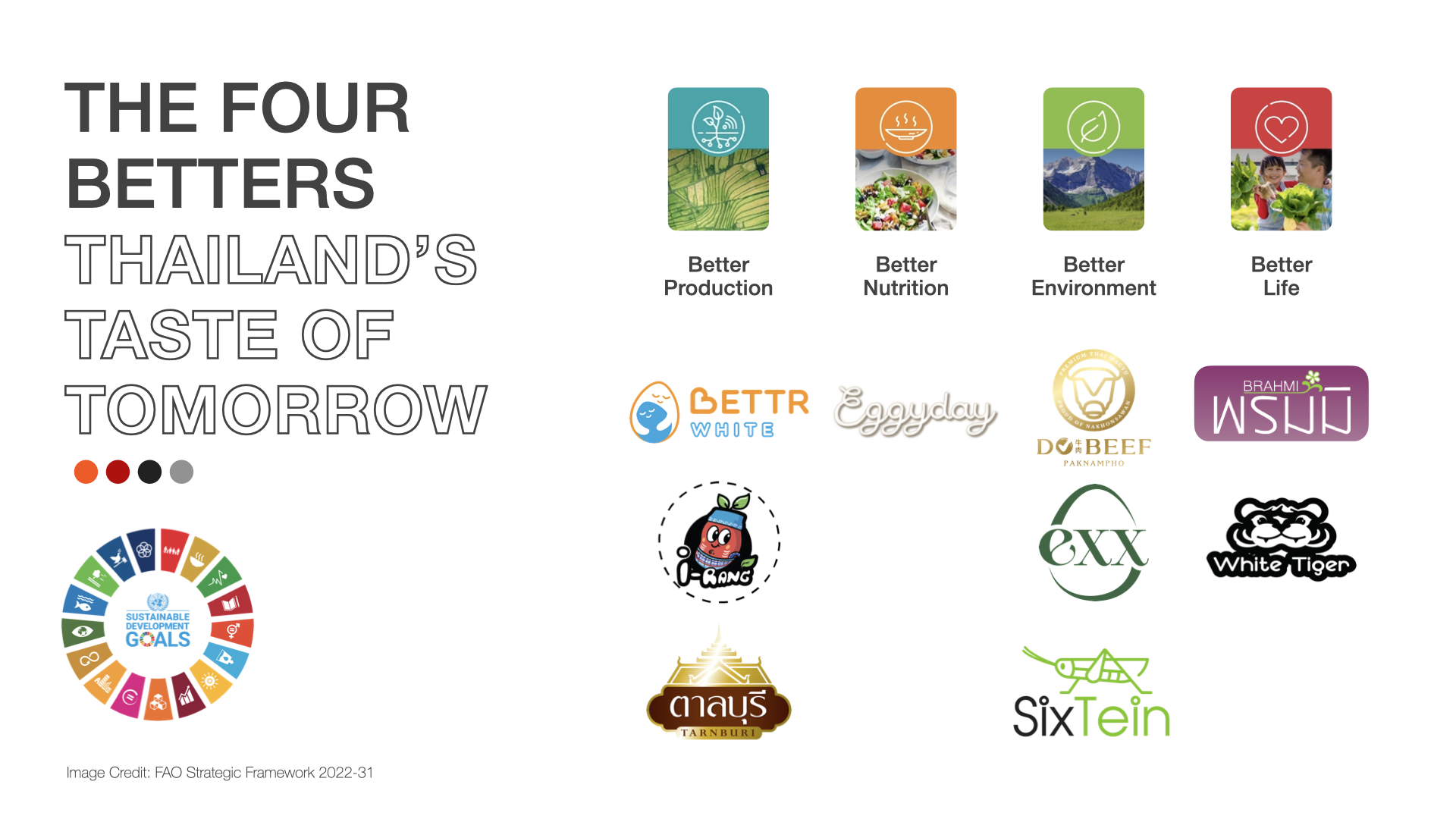 1) กำหนดทิศทางการพัฒนาแกนกลางการขับเคลื่อน (Focus Areas) และ เส้นทางผลกระทบ (Impact Pathways) เพื่อสร้างแรงขับเคลื่อนสำหรับการเปลี่ยนแปลงในวงกว้าง (Positive Impacts) ตั้งเป้าหมายให้ “คนไทยกินดี” ไหลลื่นไปกับคลื่นการเปลี่ยนแปลงสู่เป้าหมายอันยิ่งใหญ่ของมวลมนุษยชาติ อาทิ UN SDGs, FAO The 4 Betters เป็นต้น (FAO Strategic Framework 2022-31, 2021)