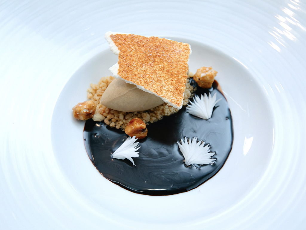 [7] Brahmi Ice Cream ออกแบบเป็น “เชอร์เบท (sherbet)” มีส่วนผสมนมเล็กน้อย แตกต่างจาก ซอร์เบ (sorbet) ซึ่งไม่มีส่วนผสมของ dairy product เชฟไมค์ ธนพล โชคดีศิริกุล แนะนำให้ชิม พรุน ก่อน ลูกหม่อน กินขมก่อนหวาน คุมเส้นรสให้ paring / lineup ไปกับอาหารจานก่อนหน้า คือ Grilled Beef