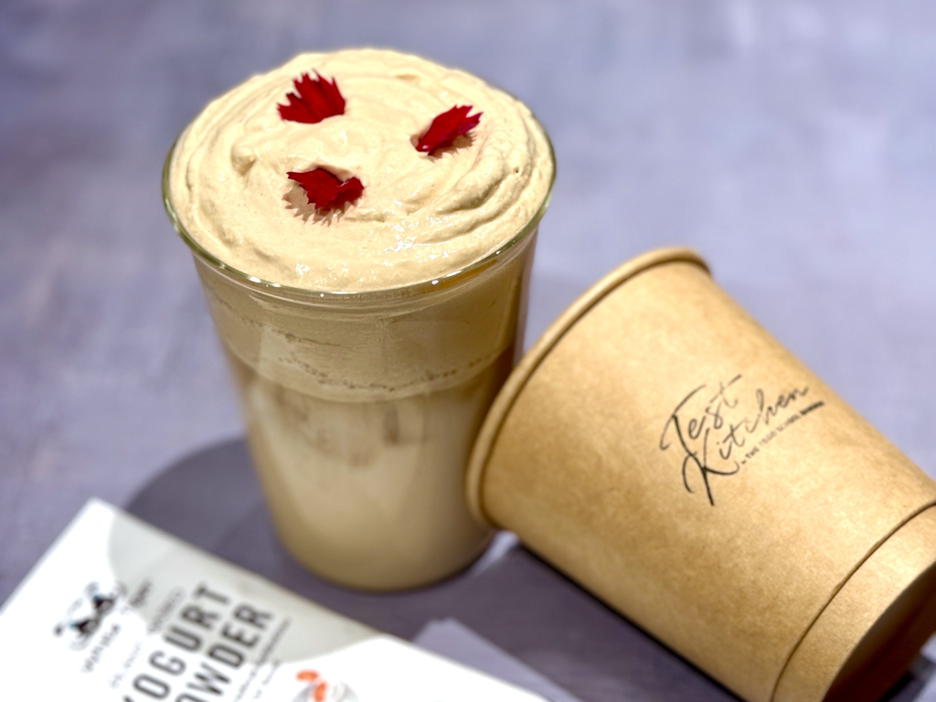 [8] Dalgona with White Tiger (Cold Coffee) มีส่วนผสมของนม / ครีม ลดความเผ็ดร้อนของเนื้อย่าง Dalgona with White Tiger มีรสชาติเหมือนกาแฟลาเต้นุ่มละมุนกลมกล่อม ซึ่งเป็นเมนูกาแฟที่มีโฟมกาแฟอยู่ด้านบนนมสด ดัดแปลงมาจากขนม “ดัลโกนา หรือ ทัลโกนา” (Dalgona Candy) เชื่อกันว่าเกิดขึ้นครั้งแรก ณ เมืองปูซาน ประเทศเกาหลี
