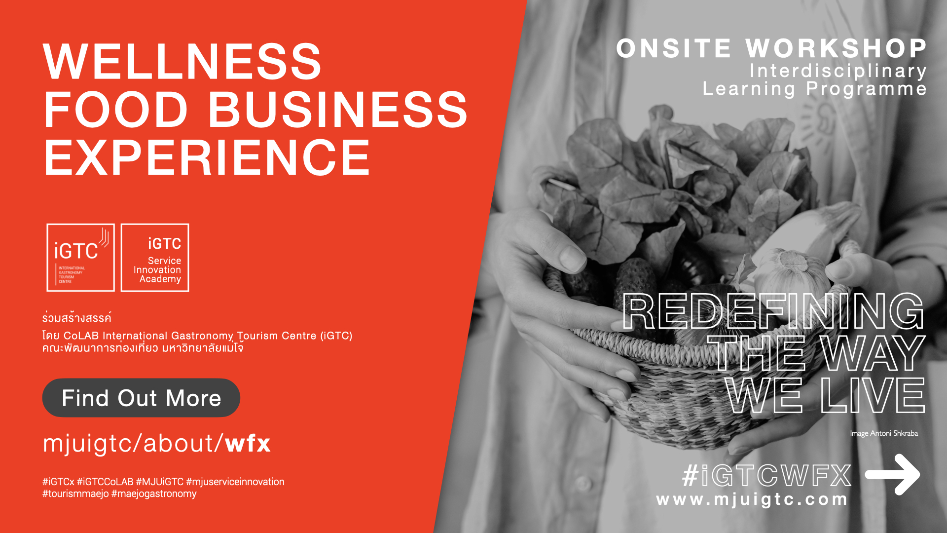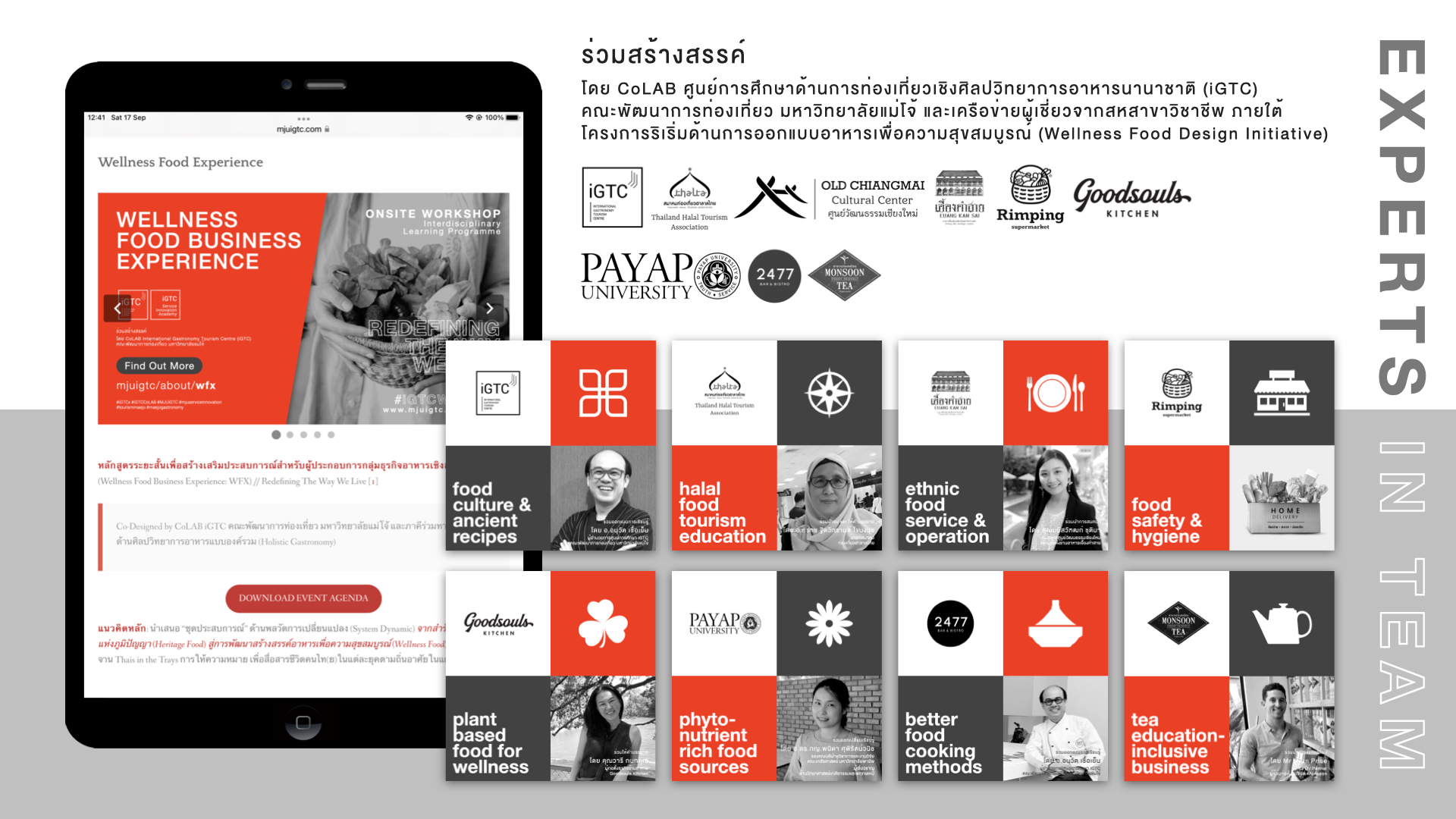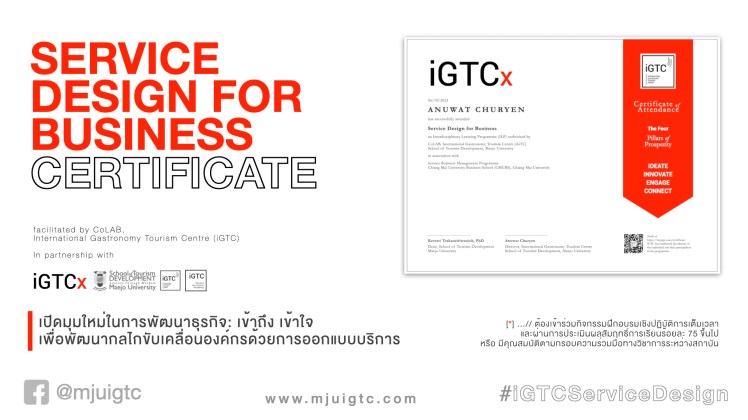 [1] หลักสูตรสหสาขาวิชาการเรียนรู้ (Interdisciplinary Learning Programme: ILP), co-designed by CoLAB iGTC คณะพัฒนาการท่องเที่ยว มหาวิทยาลัยแม่โจ้ และภาคีร่วมทางวิชาการด้านศิลปวิทยาการอาหารแบบองค์รวม (Holistic Gastronomy)