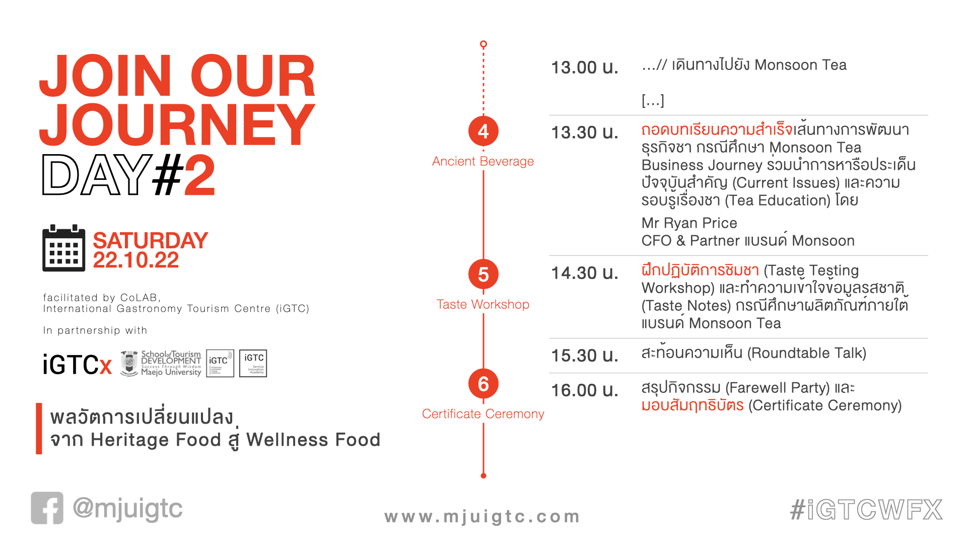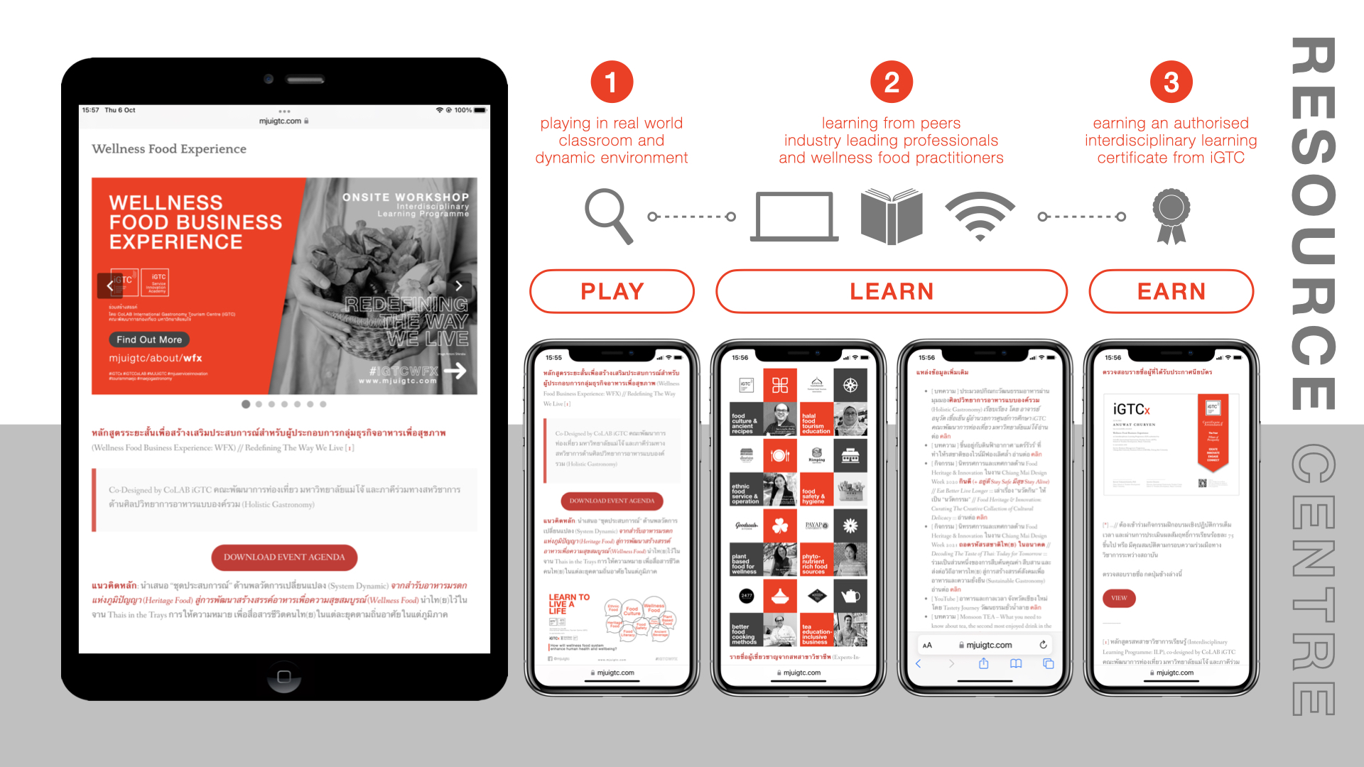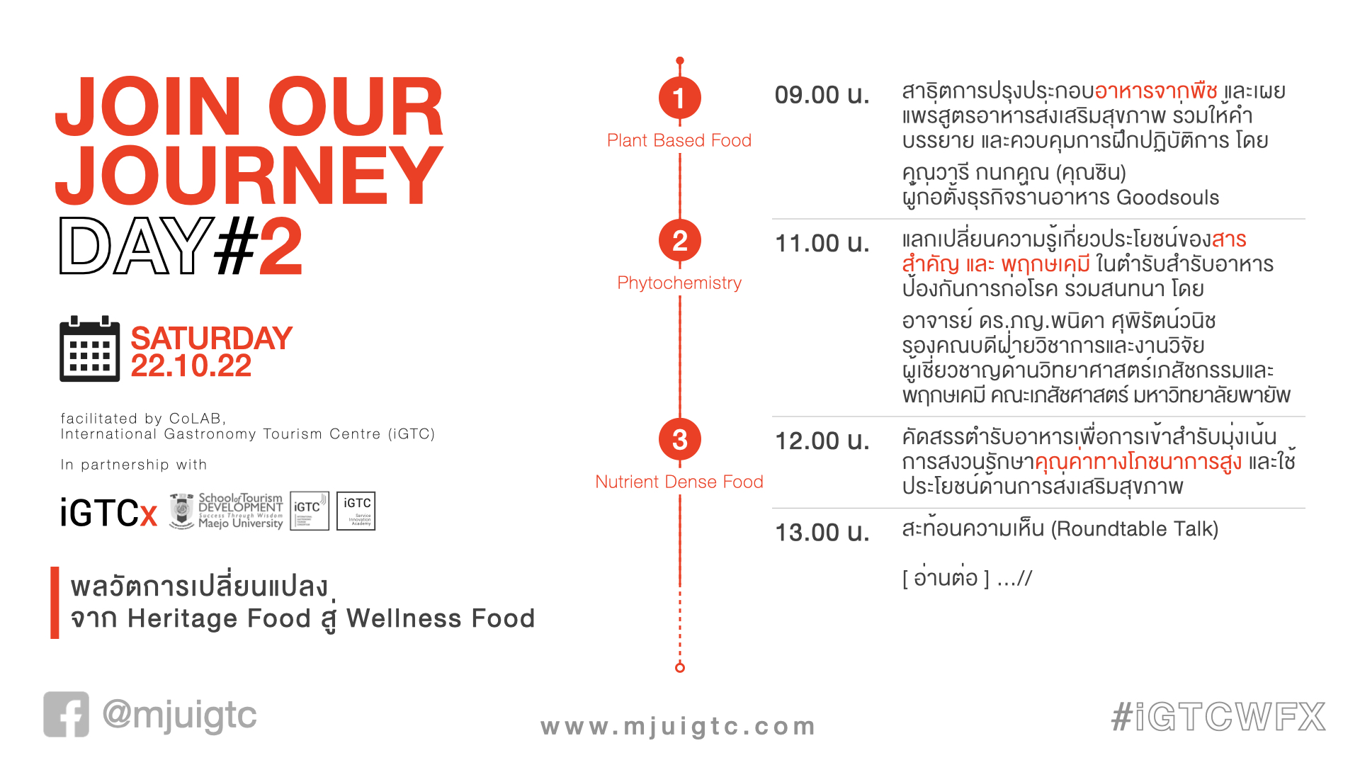 [1] หลักสูตรสหสาขาวิชาการเรียนรู้ (Interdisciplinary Learning Programme: ILP), co-designed by CoLAB iGTC คณะพัฒนาการท่องเที่ยว มหาวิทยาลัยแม่โจ้ และภาคีร่วมทางวิชาการด้านศิลปวิทยาการอาหารแบบองค์รวม (Holistic Gastronomy)