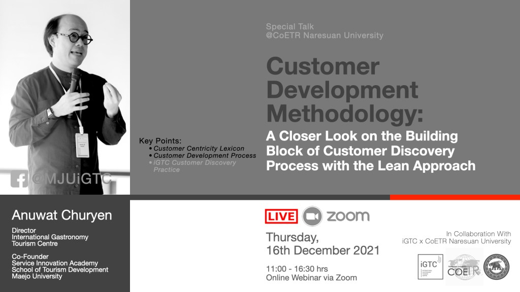 ร่วมสร้างสรรค์และอำนวยการเรียนรู้ โดย อาจารย์อนุวัต เชื้อเย็น, ผู้อำนวยการศูนย์การศึกษาด้านการท่องเที่ยวเชิงศิลปวิทยาการอาหารนานาชาติ (iGTC) และผู้ก่อตั้ง CoLAB สถาบันนวัตกรรมการบริการ (Service Innovation Academy) คณะพัฒนาการท่องเที่ยว มหาวิทยาลัยแม่โจ้ For more information, please follow iGTC Official Facebook