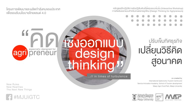 เนื้อหาพิเศษ (Special Talk) บทนำ: ชุดบทความ Service Design Mindset: Designing for Resilience ประมวลมุมมอง (viewpoint) สำหรับ “Thai Food SMEs” เพื่อการปรับตัวและอยู่รอดในสภาวะวิกฤต โดย ศูนย์การศึกษาด้านการท่องเที่ยวเชิงศิลปวิทยาการอาหารนานาชาติ (International Gastronomy Tourism Centre: iGTC) คณะพัฒนาการท่องเที่ยว มหาวิทยาลัยแม่โจ้ /// อ่านต่อ [ คลิก ] ::: ดาวน์โหลดเอกสารประกอบการบรรยาย [ คลิก ] :::