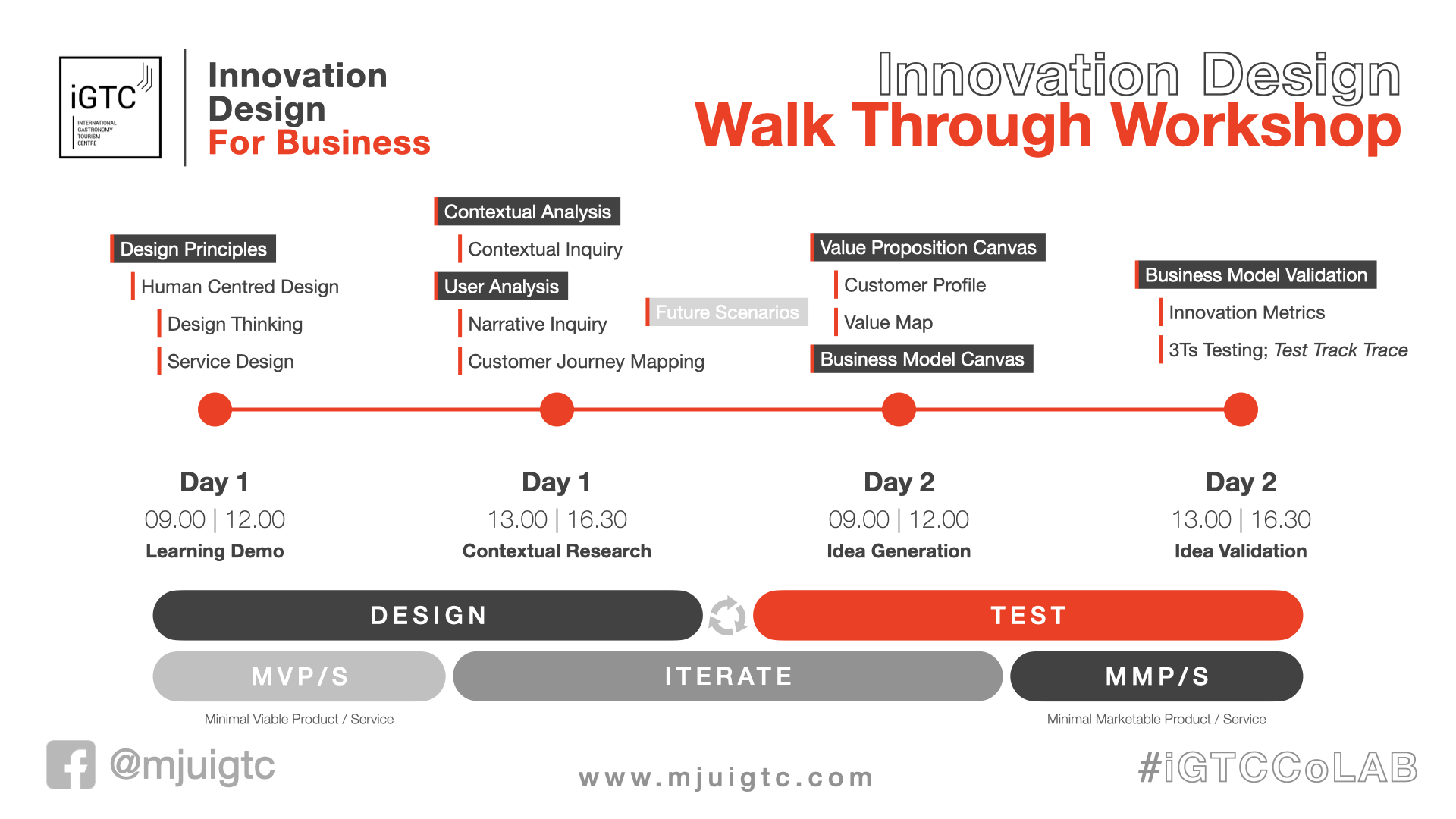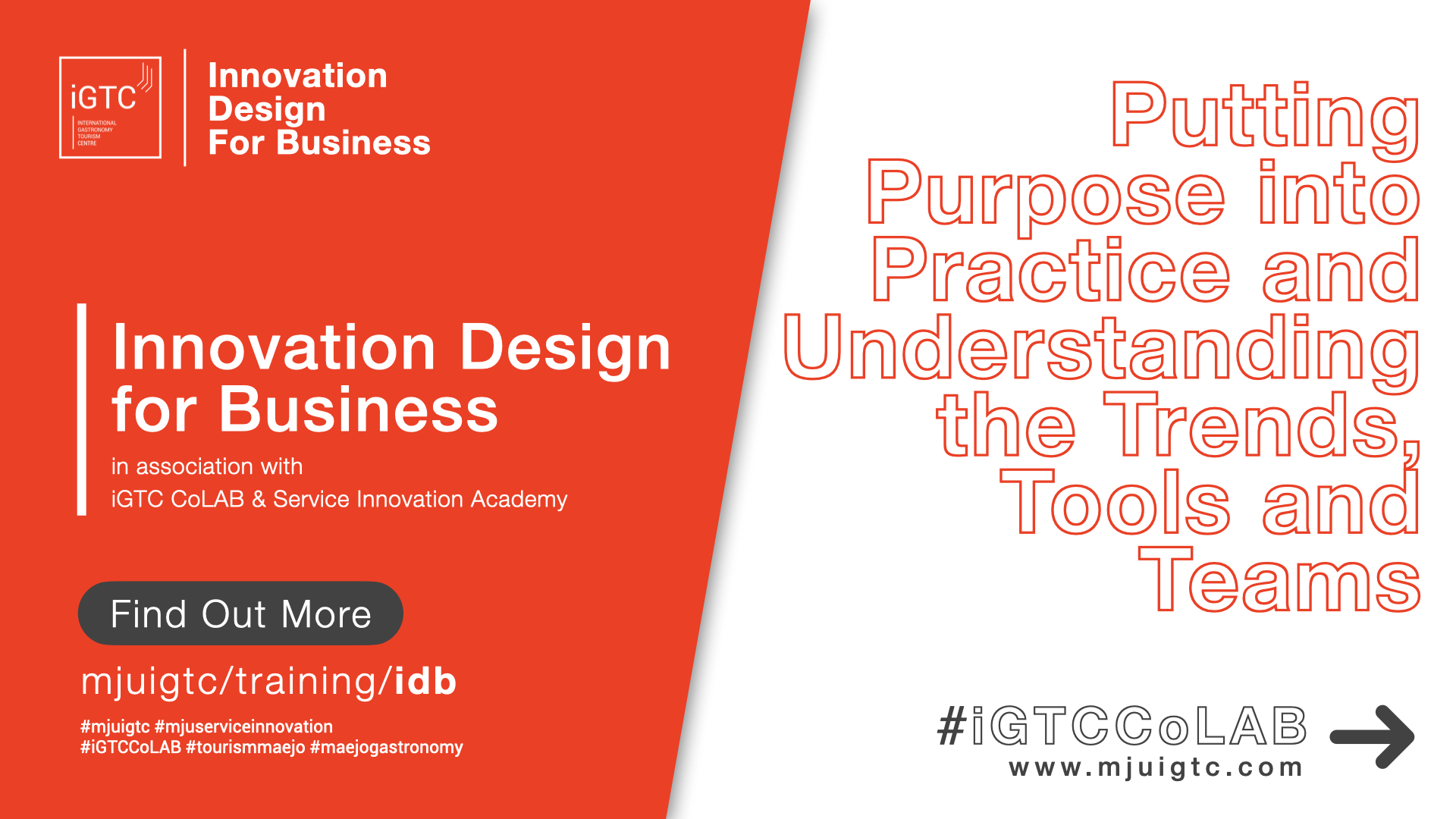 - หลักการออกแบบ (Design Principles) และ แนวทางการปรับประยุกต์ใช้สำหรับธุรกิจรูปแบบต่างๆ ในลักษณะ Peer-To-Peer Learning อาทิ การคิดเชิงออกแบบ (Design Thinking) การออกแบบบริการ (Service Design) เป็นต้น อ่านต่อ ลำดับกระบวนการออกแบบนวัตกรรม iGTC Design Flow – Action Learning Demo คลิก