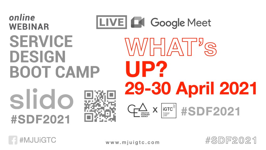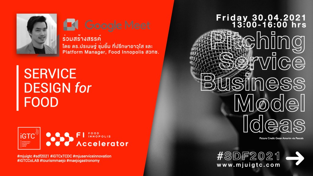สำนักงานส่งเสริมเศรษฐกิจสร้างสรรค์ องค์การมหาชน เชียงใหม่ (CEA) ร่วมกับ CoLAB ศูนย์การศึกษาด้านการท่องเที่ยวเชิงศิลปวิทยาการอาหารนานาชาติ (iGTC) คณะพัฒนาการท่องเที่ยว มหาวิทยาลัยแม่โจ้ ร่วมสร้างสรรค์โครงการริเริ่มด้านการออกแบบบริการ (Service Design Initiative by CEA x iGTC) // ดาวน์โหลดเอกสาร “แนวคิดการพัฒนาโครงการ SDF2021” คลิก