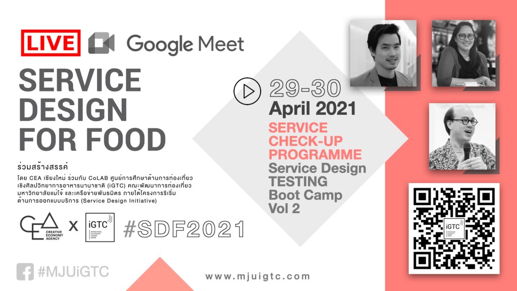 CEA x iGTC เพื่อนช่วยคิด…ฟื้นฟูเศรษฐกิจด้วย Service Design for Food “…มุ่งทำความเข้าใจเกี่ยวกับต้นทุนทางวัฒนธรรม ต่อยอดและเตรียมพร้อมรับมือกับสถานการณ์อนาคต คิด ผลิต พัฒนา บริการใหม่ที่ถูกใจลูกค้า เพิ่มมูลค่าให้ผลิตภัณฑ์ด้วยกระบวนการ Service Design…” // สนใจสมัครเข้าร่วมโครงการ คลิก