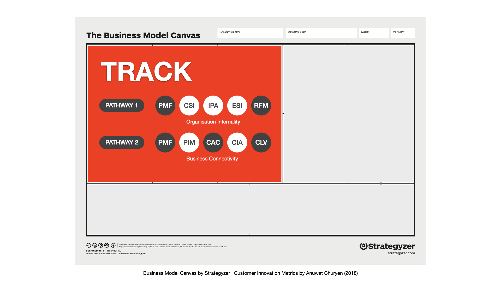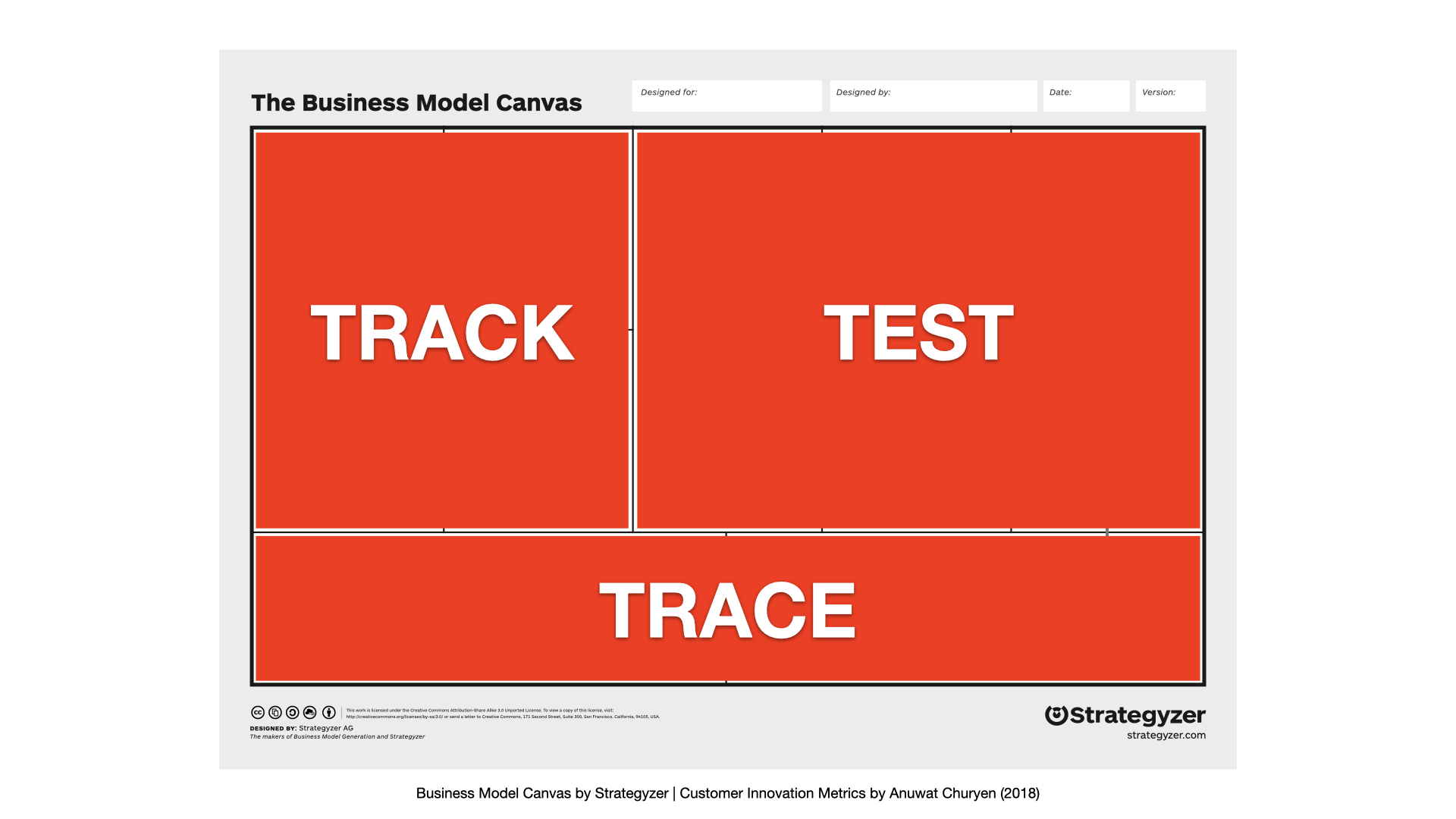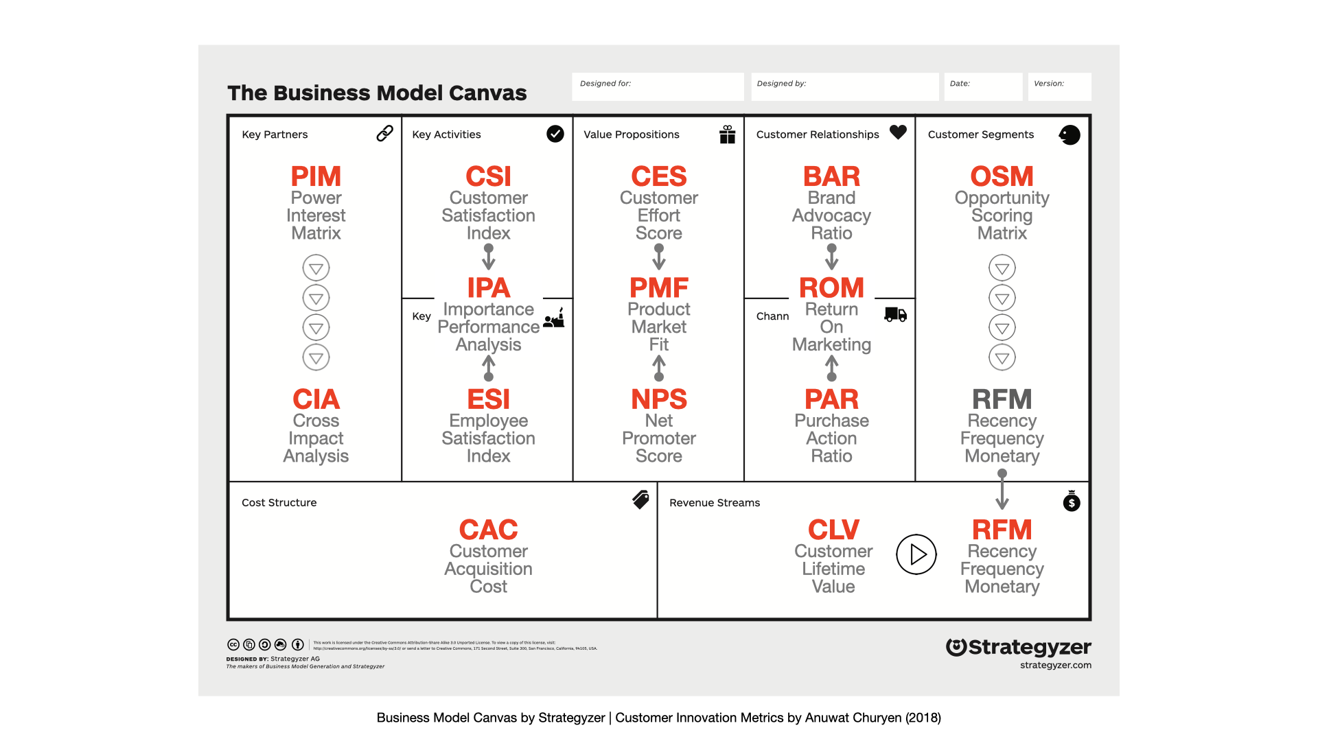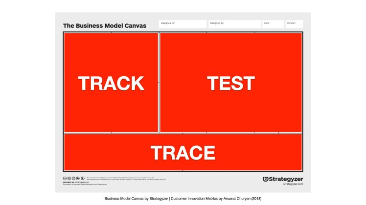 ตัวอย่าง มาตรวัดผลนวัตกรรมที่ยึดลูกค้าเป็นศูนย์กลาง (Customer Innovation Metrics) สังเคราะห์ข้อมูลโดย iGTC Consulting Service อ้างอิงกรอบแนวคิด Business Model Canvas พัฒนาโดย Stratgyzer