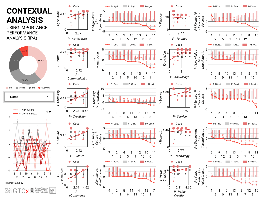 - การวัดผลการปฏิบัติงาน (Importance Performance Analysis: IPA) เพื่อประเมินช่องว่าง (gap analysis) ด้วยวิธีการจัดลำดับความสำคัญ 2 ตัวแปร ได้แก่ ความสำคัญ (importance) และ ความสามารถ (performance) บนฐานทุนทางวัฒนธรรมและทรัพยากรในพื้นที่เป้าหมาย